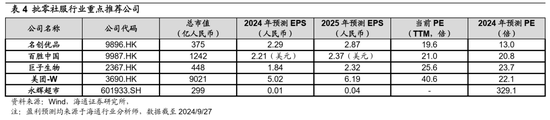 核心推荐:名创优品、百胜中国、巨子生物、美团-W、永辉超市。