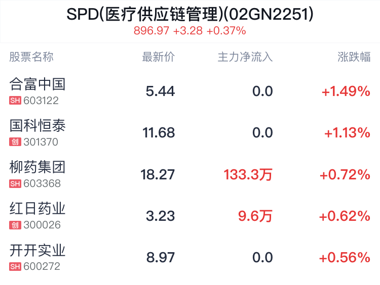 从资金上来看,截止发稿,SPD(医疗供应链管理)概念主力净流入为66.38万,其中润达医疗受到资金热捧,主力净流入330.45万;拉长时间线来看,该板块近20日主力资金净流入-6.88亿。